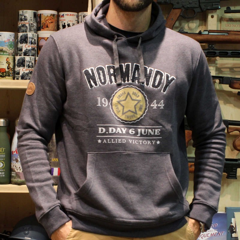 Ce sweat est de couleur grise. Flocage sur la poitrine et à la manche.